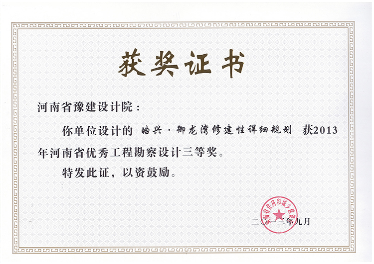御龍灣證書獲獎(jiǎng)證書-2013年獲獎(jiǎng)證書-公司榮譽(yù)
