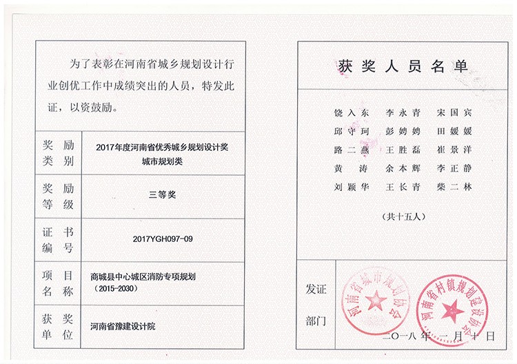 商城縣中心城區(qū)消防專項獲獎證書-2017年獲獎證書-公司榮譽(yù)